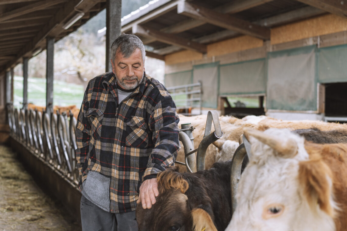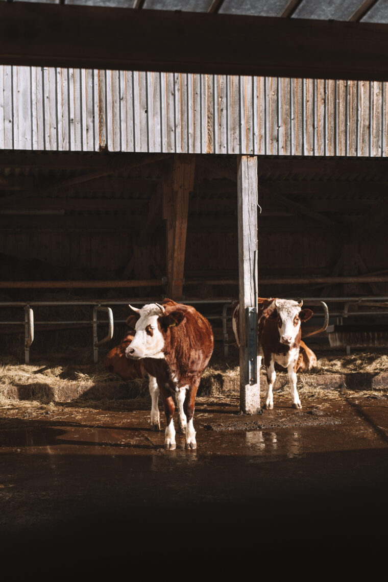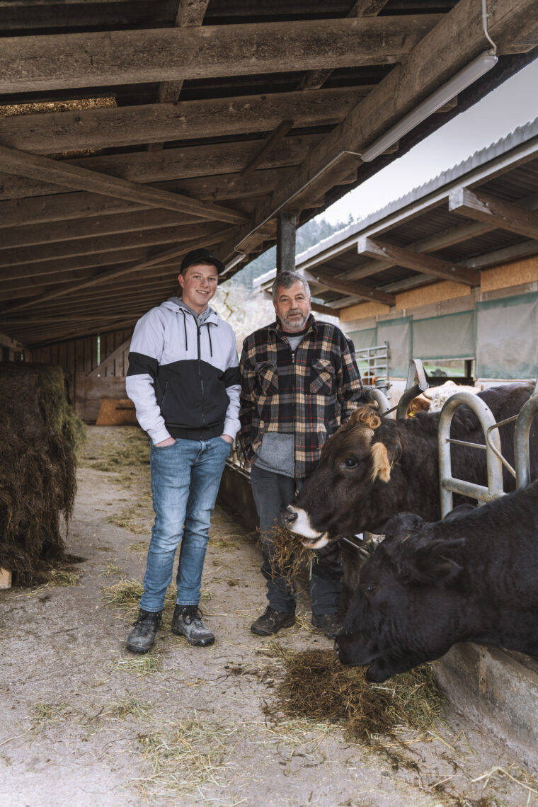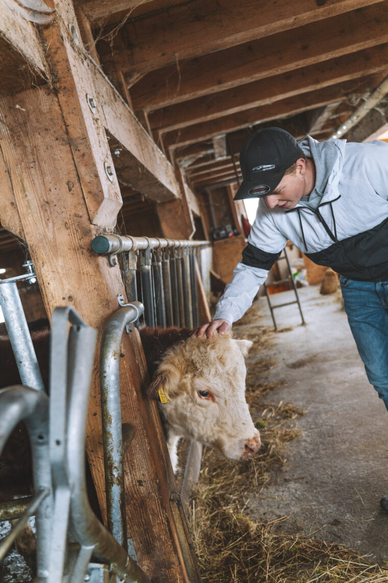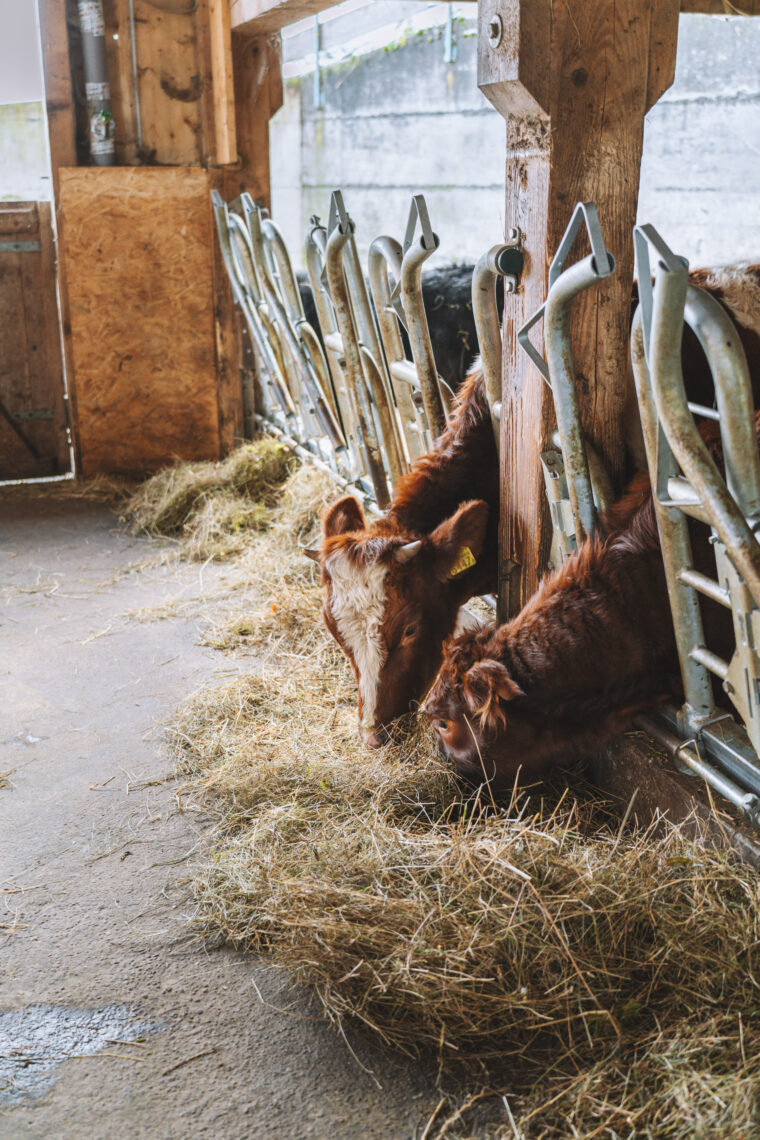 Auf dem Rundgang durch den Stall begleitet uns auch Josua Stalder, der jüngste Sohn der Familie. Aktuell befindet er sich noch in der Ausbildung zum Landwirt und hilft seinem Vater auf dem Familienbetrieb, wo er nur kann. «Ein geschlossener Kreislauf ist das Ziel der Bio-Tierhaltung. Für uns ist es aber viel mehr als ein Label. Es ist eine Herzensangelegenheit» betont der zukünftige Betriebsleiter. Die sanften Wiederkäuer fressen statt Kraftfutter frisches Gras, Silage und Heu vom eigenen Hof, wobei ihr Mist wiederum als natürlicher Dünger für die Felder dient. Nachhaltigkeit, die man anschliessend auch im Bio-Fleisch schmeckt.