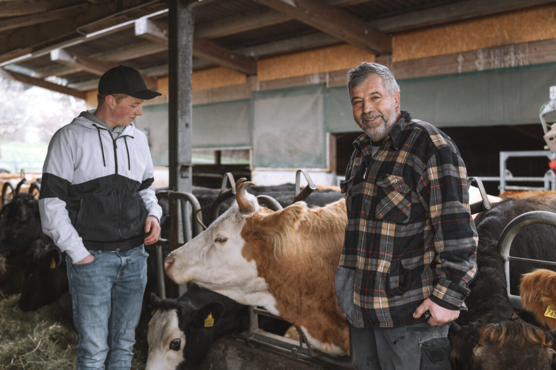 «Wir sind extrem dankbar, dass wir das arbeiten dürfen, was wir am liebsten tun» meint Karin, die als Hebamme noch ihre eigene Praxis im Dorf führt, und Josua ergänzt: «Wir helfen alle mit und unterstützen einander.» So kümmert sich beispielsweise der älteste Sohn Samuel als gelernter Landmaschinenmechaniker zweimal pro Woche um den Maschinenunterhalt, und Verwandte sowie Nachbar:innen springen ein, wenn Not am Mann oder an der Kuh ist.