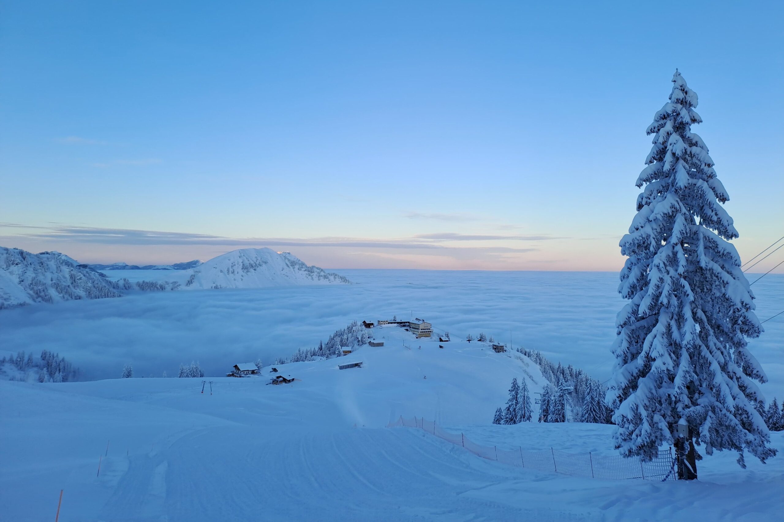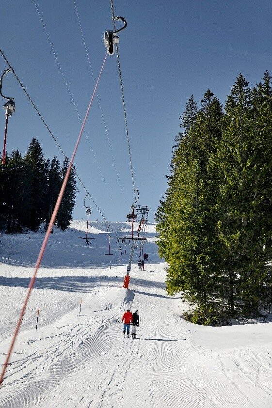 Auf der Stockhütte angekommen, gönnten mein Mann und ich uns erst einmal einen gemütlichen Kaffee im Berggasthaus, wo wir auch ein paar rasanten Schlittlern zusehen konnten. Während wir kurz durchatmeten, waren die Kinder schon mitten im Geschehen. Mit viel Ausdauer und Begeisterung flitzten sie den Zauberteppich hoch und wieder runter. Für uns der perfekte Start in den Tag.