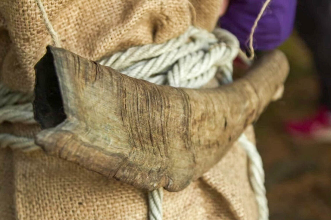 Urig, rau und kraftvoll – das Horn ist ein Symbol des Brauchs und verstärkt den eindringlichen Klang des Umzugs.