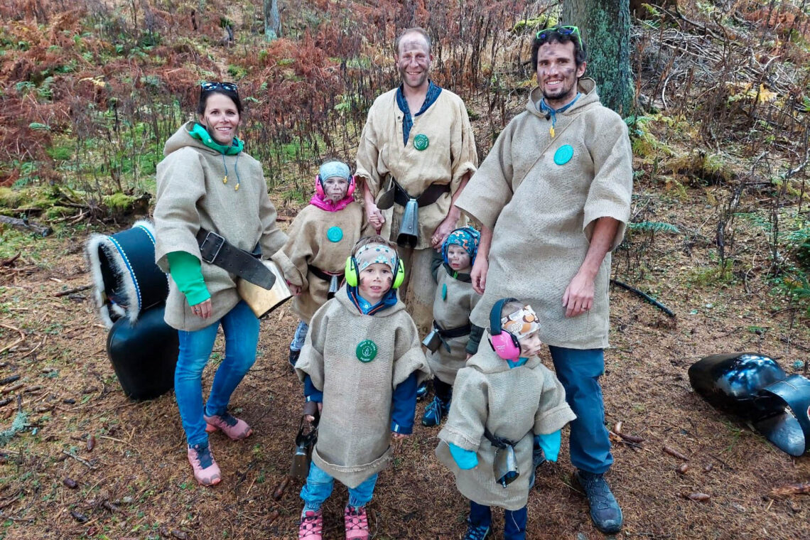 Im goldenen Herbstlicht ziehen Gross und Klein als Woldmanndli verkleidet los.