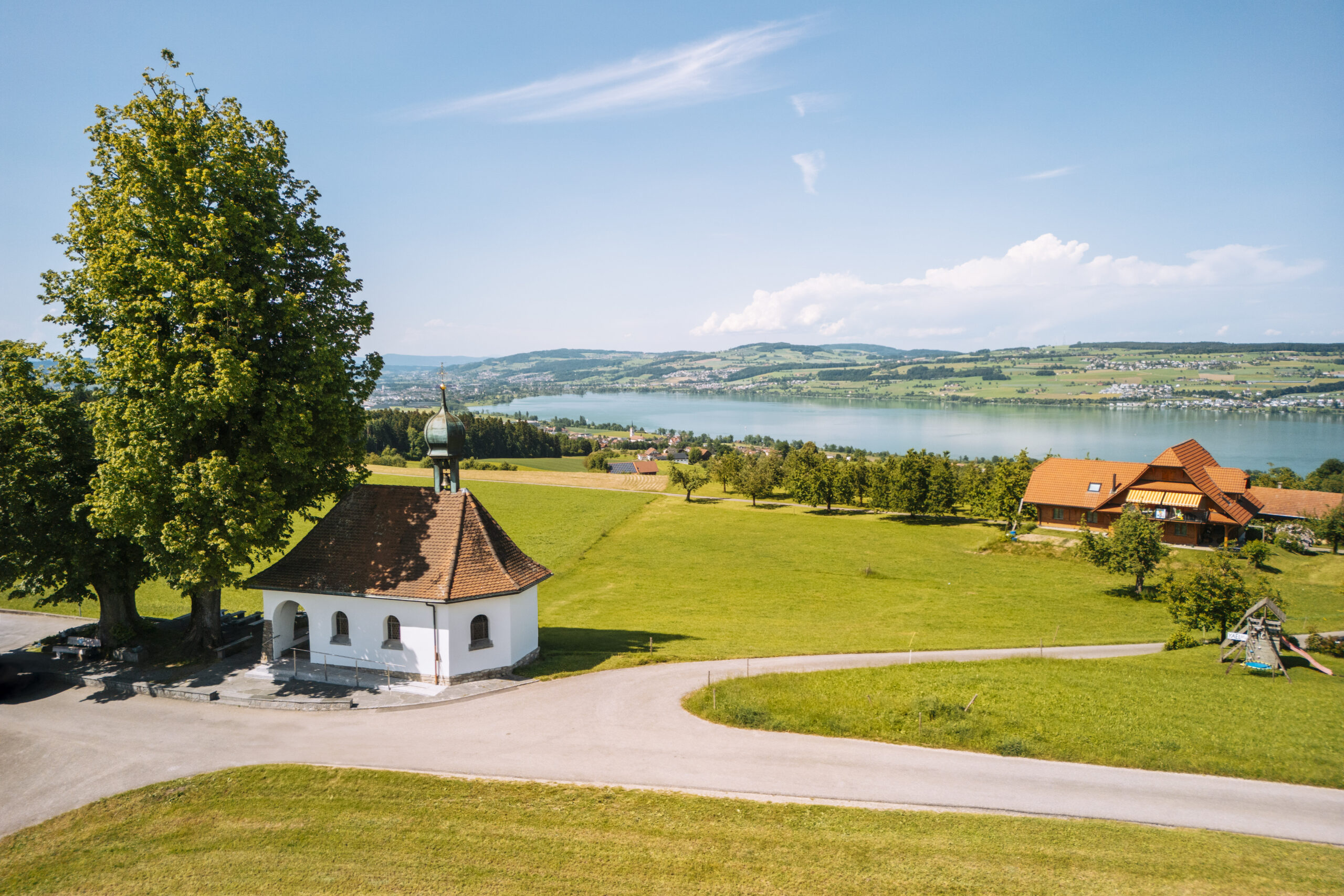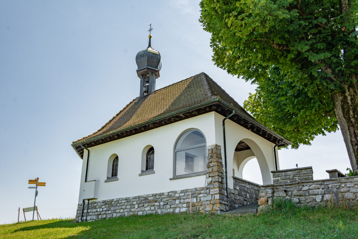 Kurz darauf passierst du den Weiler St. Ottilien mit der markanten und architektonisch sehr interessanten Kapelle in Form eines Achtecks. Nun geht es über Rot und den Under Merzeberg hinauf zur Flüsskapelle oberhalb von Nottwil.