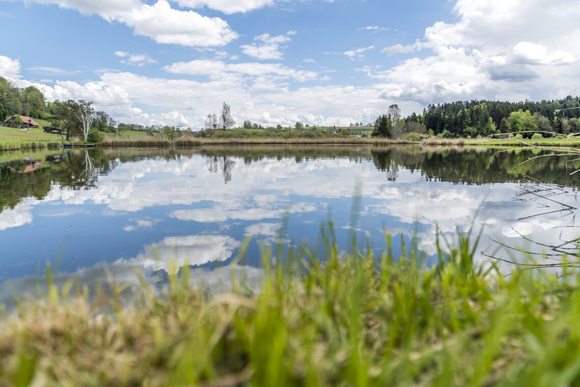 Unten im Tal angekommen, unweit des Kantonsspitals Wolhusen, ist linker Hand der kleine, wunderschöne Tutensee und in unmittelbarer Nähe davon ist das Tuetiseemoos. Von hier geht es flott vorwärts auf eher coupiertem Gelände – hier darf du es auch mal «ziehen» lassen. Der Soppensee markiert ziemlich genau die Hälfte der Strecke und liegt zwischen Ruswil und Buttisholz.