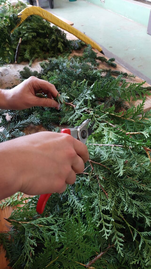 Mit verschiedenen Grünzweigen und Sonnenblumen haben wir die Bauchkränze und Meien gebunden. Bei dieser Arbeit helfen die ganze Familie und zusätzliche Helfer fleissig mit. Es ist eine ruhige Fleissarbeit, man hat die Gelegenheit miteinander zu reden. Dabei kann die Wehmut aufkommen, denn es wird uns bewusst, der Sommer ist definitiv vorbei.