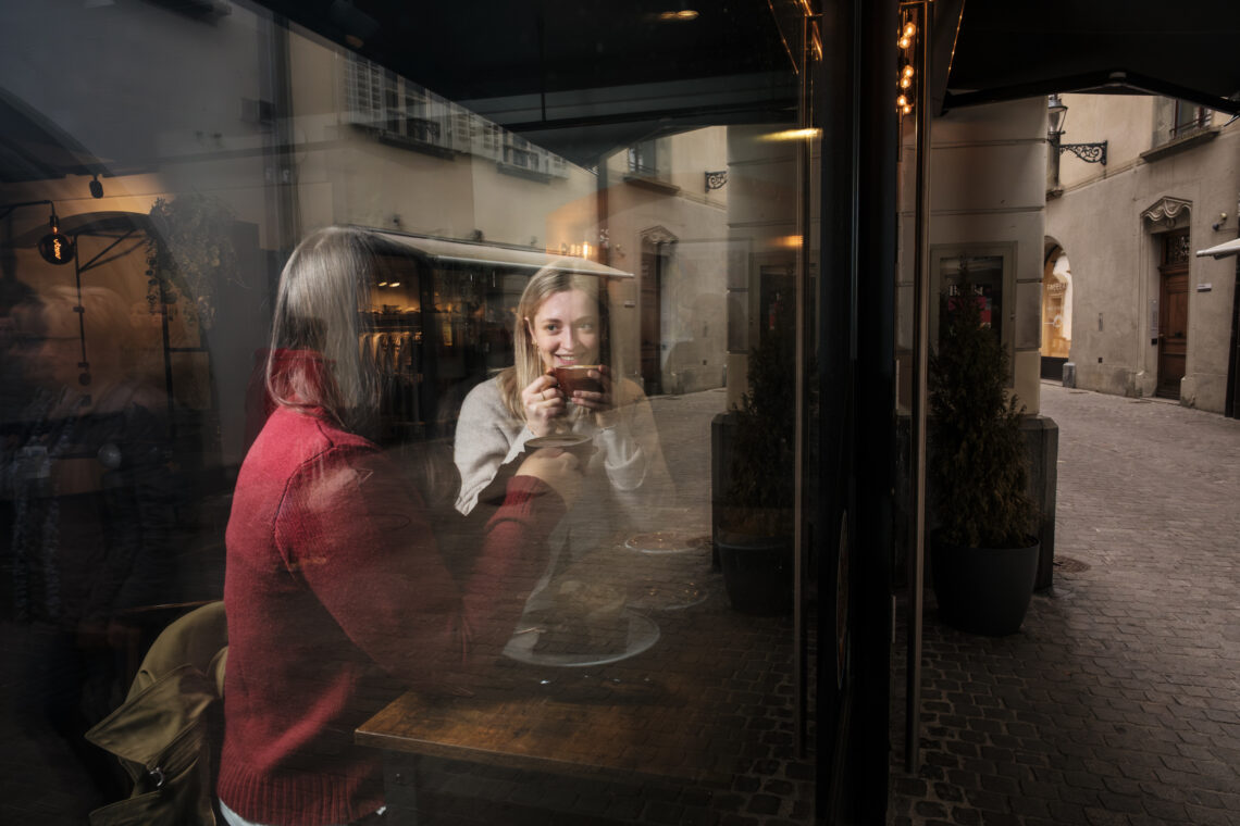Auf dem Weg zurück in die Altstadt, kommen wir an einem zahlreichen pinken Gastrohüttli vorbei. Wir versorgen uns mit warmem Tee und heisser Schokolade und streifen noch etwas weiter durch die Gassen. Neben uns zählen Kinder tanzende Fische, vor uns geht ein Pärchen, das bei jedem «Ohh wie schön» etwas näher zusammenrückt. Am nächsten Ort beobachten wir, wie eine Freundes-Clique ein Dance-Battle bei Installation 20 veranstaltet und alte Bekannte, die sich per Zufall in der Stadt treffen.