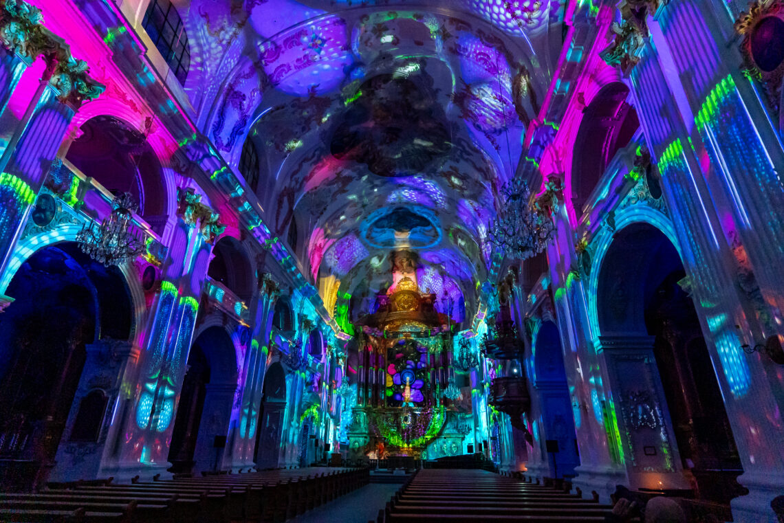 Ein Fest für alle Sinne findet in der Jesuitenkirche statt. Obschon ich geübte Lilu-Gängerin bin, fasziniert es mich immer wieder aufs Neue, wie präzise die Lichtkunst auf das Gemäuer der Jesuitenkirche projiziert wird. Die Lichtshow, die Story und die Musik verschmelzen und alles wird irgendwie eins mit dem Gebäude.