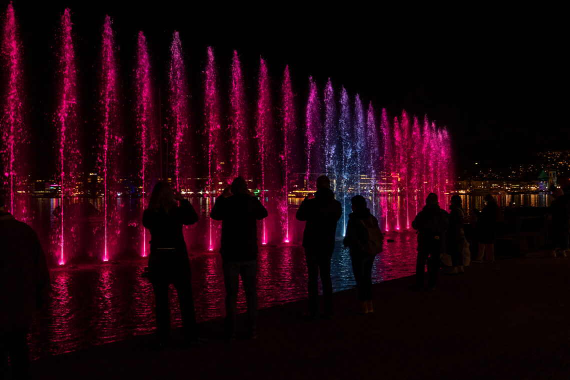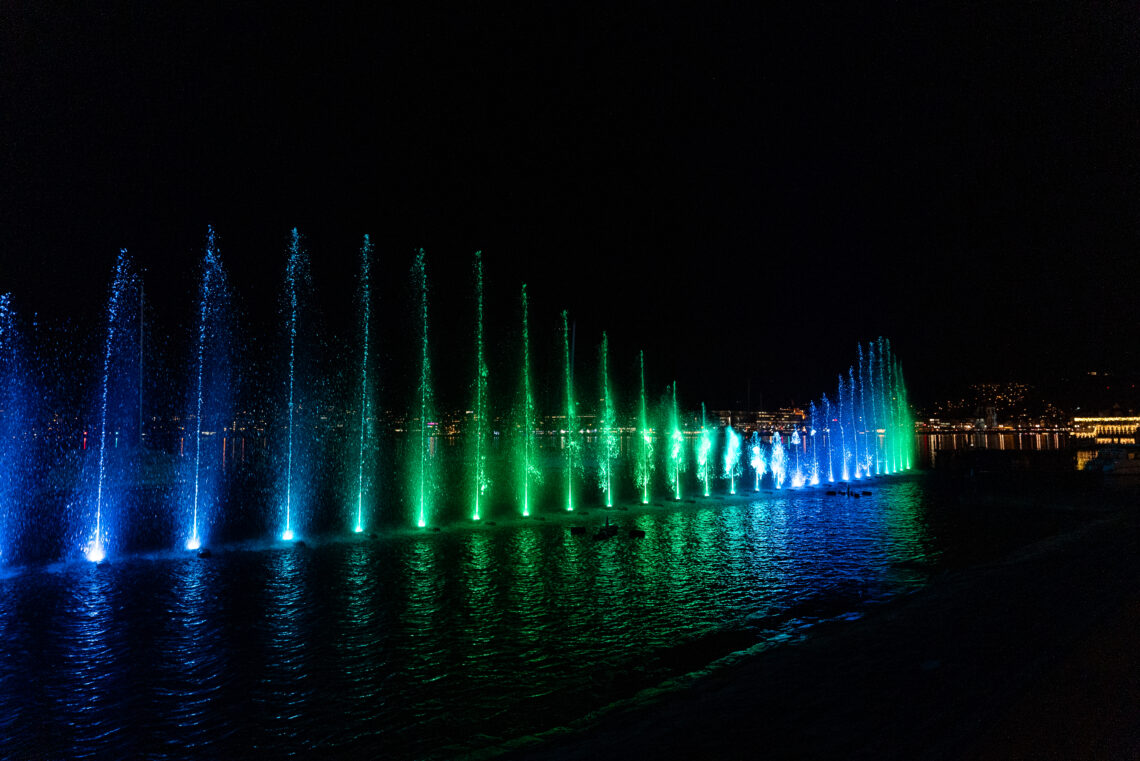 Wie Feuerwerk sehen wir von Weitem Wasserfontänen in die Höhe schiessen. Begleitet von einer Lichtchoreografie und den schönen Melodien bleiben wir vor dem Casino stehen. Wasser hat einfach eine magische Wirkung auf mich. Und scheinbar auch auf andere. Immer wieder beobachte ich, wie Menschen vertieft kurz die Augen schliessen, durchatmen und damit der Installation «Breathe» alle Ehre machen.