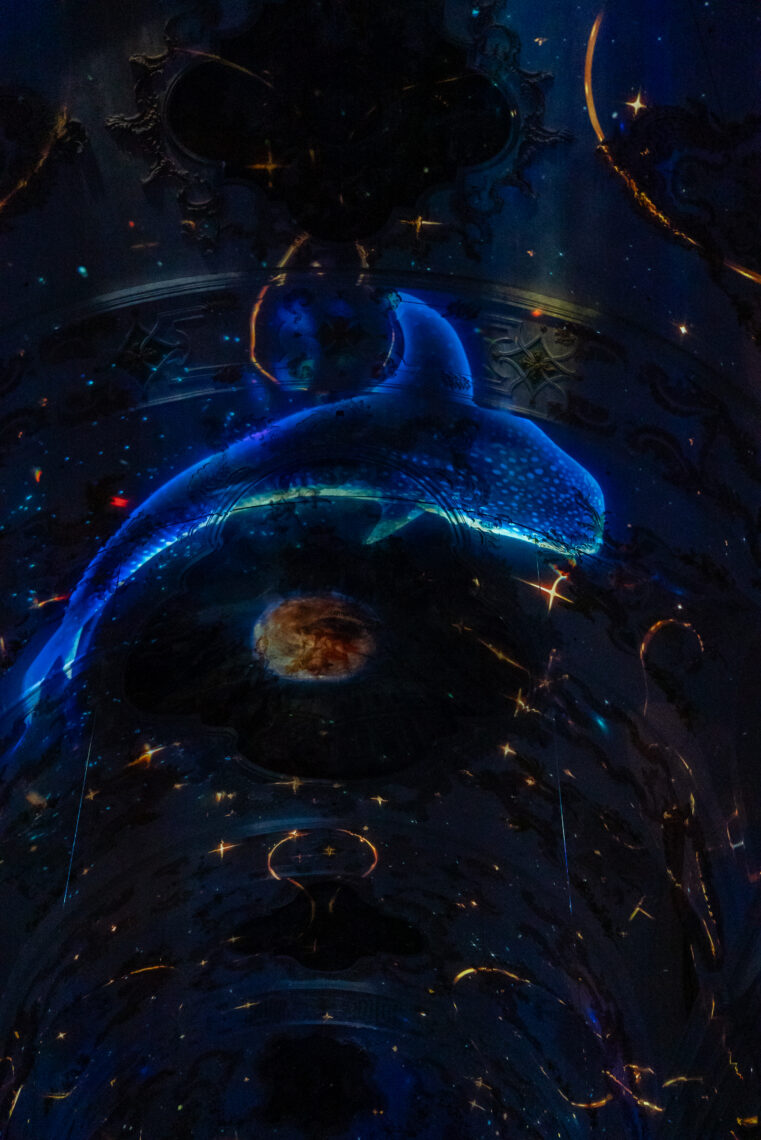 Bei der Lichtshow «SOUL» mischen sich Traum und Realität. Der Mix aus der surrealen Sphäre und den realen Tiergeräuschen macht die Lichtshow zum Highlight. Während ich von den Klängen vom neu interpretierten Saint-Saëns’ Karneval der Tiere berieselt werde, fliege ich mit einem Vögelchen durch das Universum, schwimme mit Schwänen und Walen durch eine Unterwasserwelt und entdecke den die Sphäre mit Bären. Klingt abgespaced. Ist es auch ein bitzli – und trotzdem bin ich jedes Jahr wieder aufs Neue gespannt, was sich das Künstlerkollektiv Projektil ausdenkt für die Show in der Jesuitenkirche.