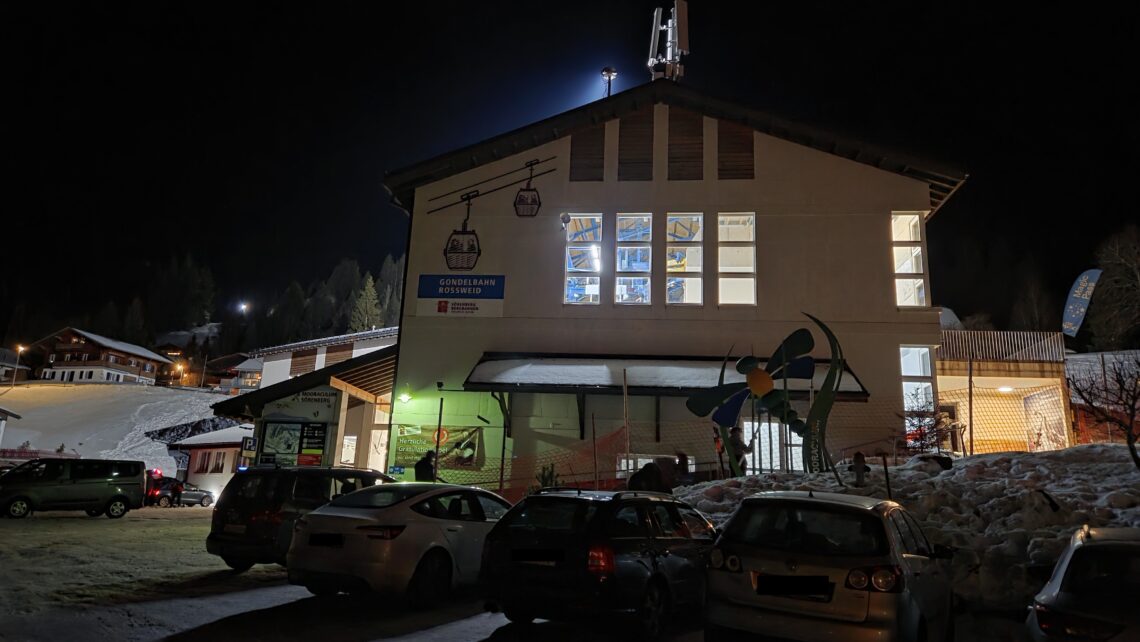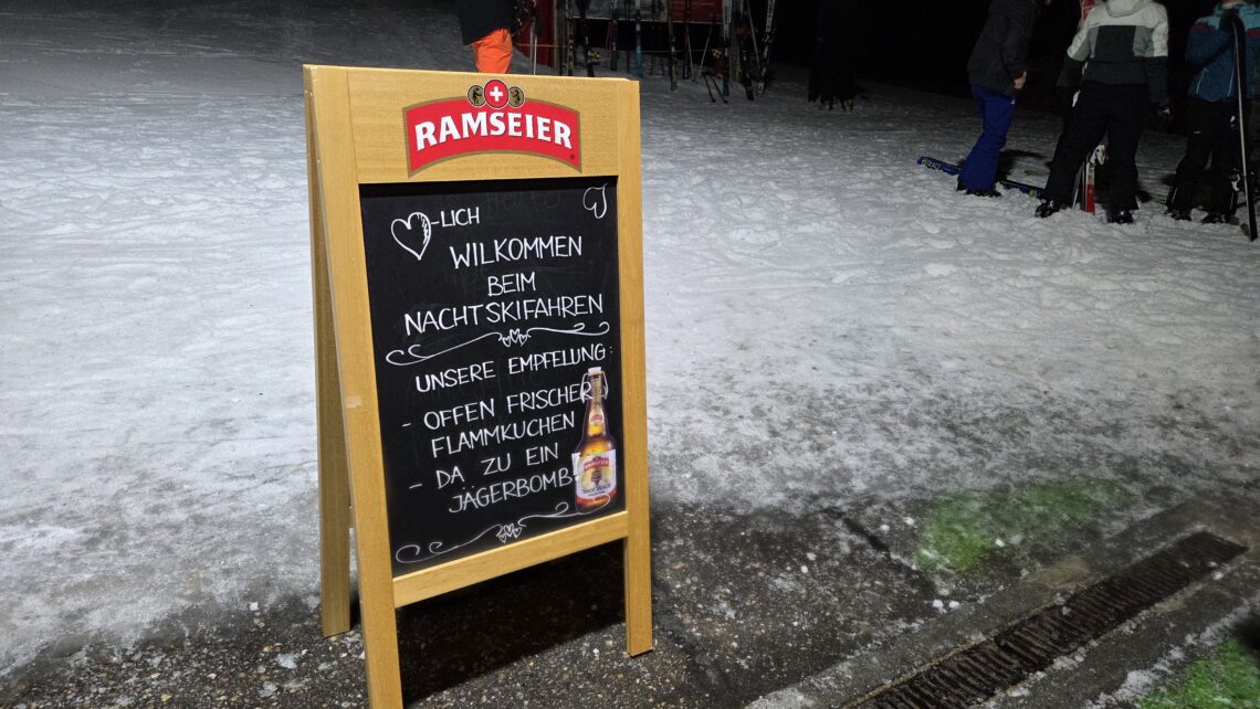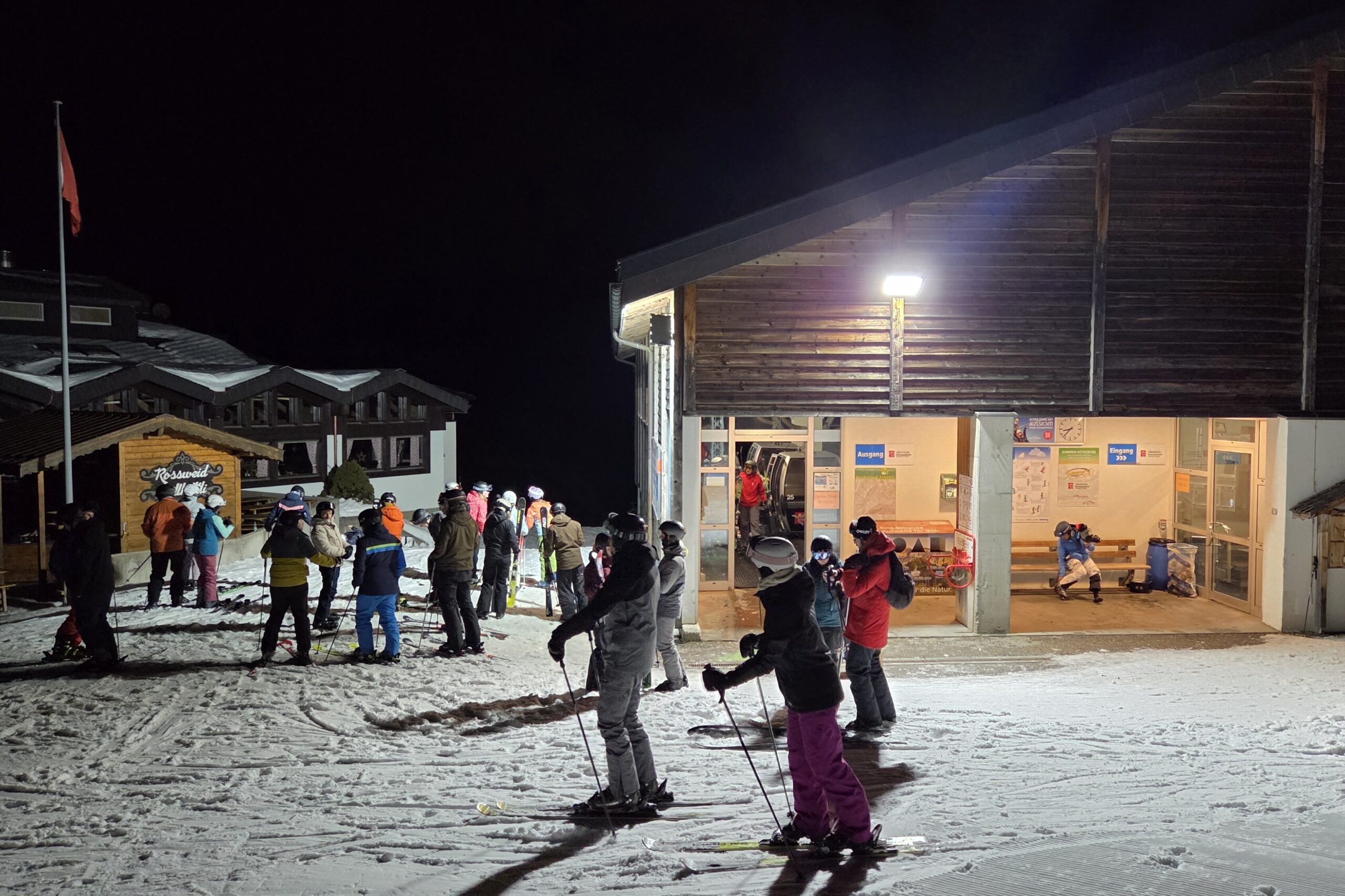 Ab 19.00 Uhr geht es los mit dem Nachtskifahren und wir machen uns auf zur Talstation der Gondelbahn Rossweid. Der Andrang heute ist gross – kein Wunder bei den super Bedingungen – und die besten Parkplätze sind früh besetzt. Es lohnt sich also etwas früher einzutreffen. Die Anreise ist aber auch bequem mit dem ÖV möglich, denn das Postauto trifft kurz vor 19 Uhr bei der Haltestelle Sörenberg Post ein und das geht zeitlich perfekt auf.