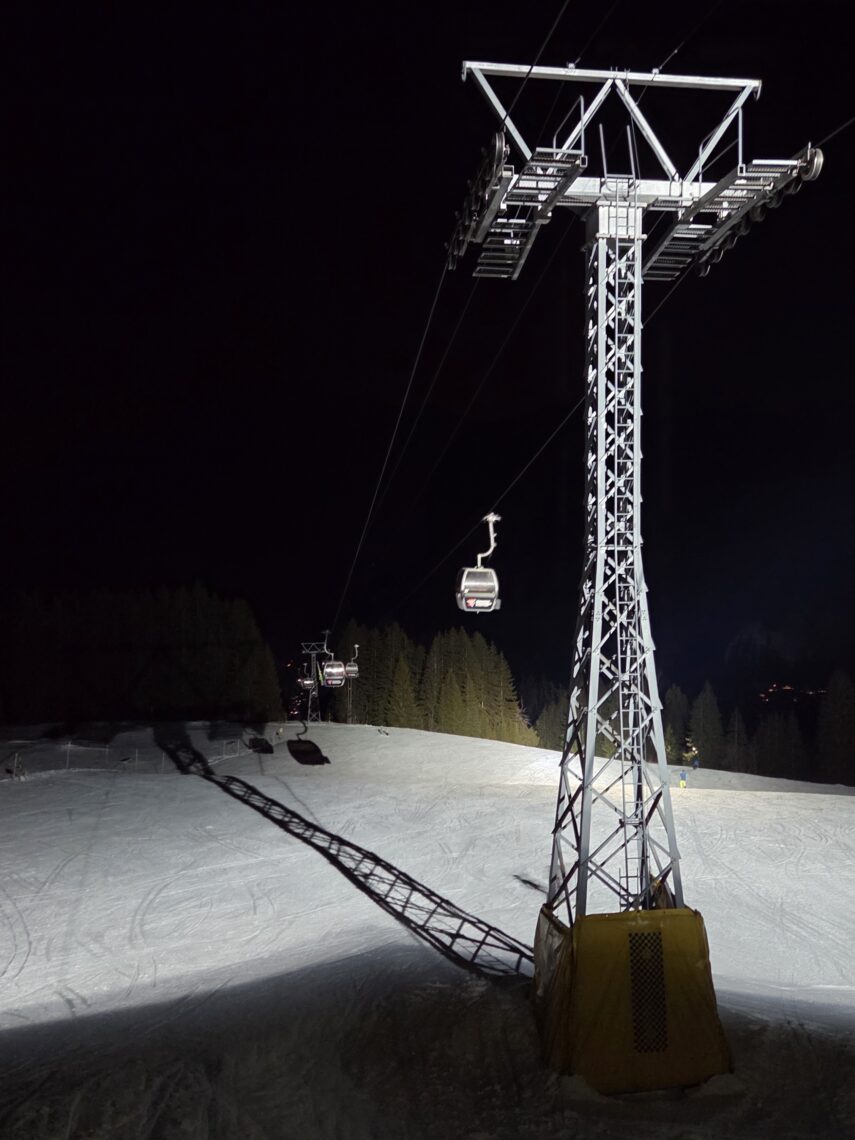 Gestärkt schnallen wir die Skier wieder an und geniessen die letzten Fahrten des Abends. Die Zeit ist erstaunlich schnell vergangen und plötzlich merken wir, dass gar nicht mehr viele Abfahrten bleiben. Somit heisst es nochmals die magische Stimmung aufsaugen und die letzten Schwünge in den Schnee zaubern. Denn um 21.30 Uhr bringt die Gondel die letzten Gäste nach oben für eine aller letzte Abfahrt an diesem unvergesslichen Freitagabend.