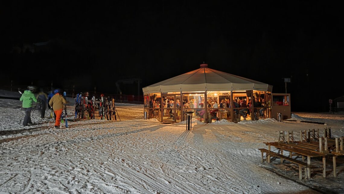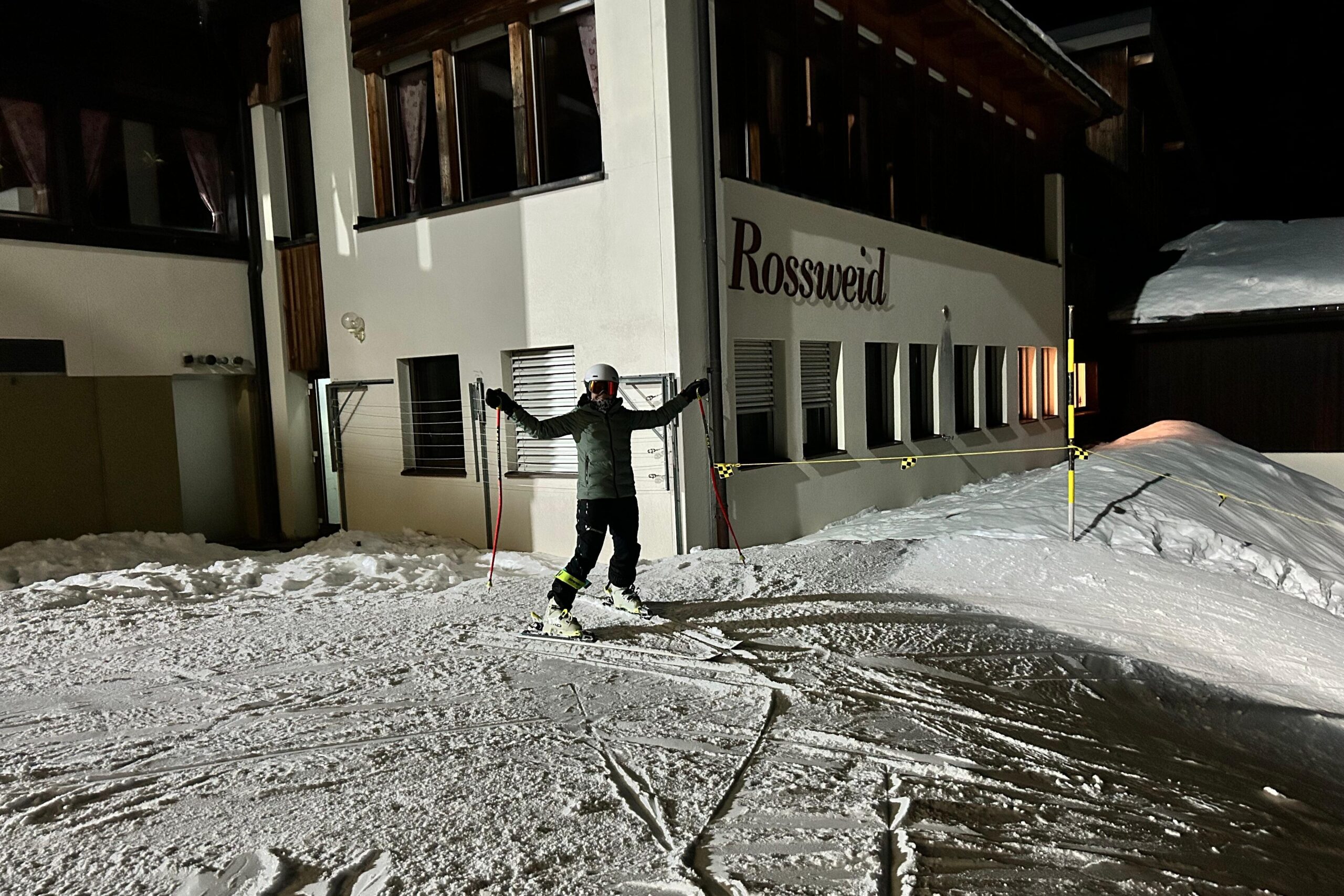 Nun heisst es aber ab auf die Piste! Die ersten Schwünge im frisch präparierten Schnee entlang der beleuchteten Rossweid-Abfahrt fühlen sich gleich ganz besonders an. Die rote Piste ist angenehm zu fahren, nicht zu anspruchsvoll und eignet sich somit für alle Altersklassen. Unter dem Sternenhimmel und im besten Fall noch mit Mondschein die Hänge hinunterzugleiten hat definitiv einen besonderen Charm.