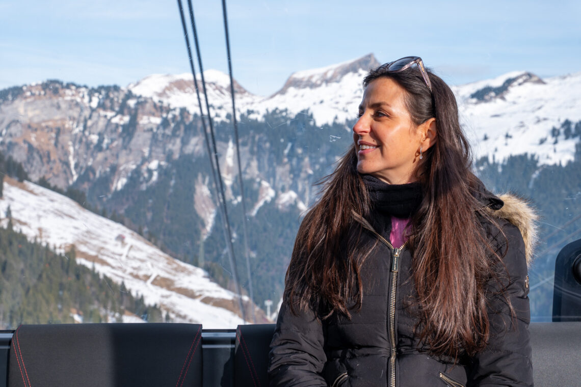 Der Ausflug ins Hoch-Ybrig beginnt mit einer Überraschung: gratis parkieren bei der Talstation in der Weglosen für alle, die die Bahn benutzen. Wir sagen Danke und holen uns zwei Tageskarten für Fussgängerinnen. Dann rein in die Gondel, und zwar ohne die früheren Wartezeiten der alten Pendelbahn. Jetzt kommt speditiv eine 18er-Kabine nach der anderen. Die TRI-Line-Seilbahn ist eine Weltneuheit mit innovativer Technik. Schön und gut, doch uns interessiert vor allem eins: sitzen und ungestört aus dem Fenster schauen.